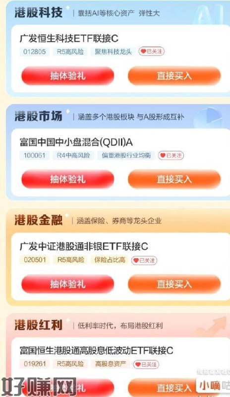 招商很行APP首页点基金,然后上方横幅如图,进去下拉四个体验金做任务必中啊。有没有体验奖励就另说了,毕竟港股嘛