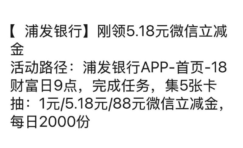 路径 我的 钱包 银行卡 里面显示有立减金活动,点进去参加就行啦